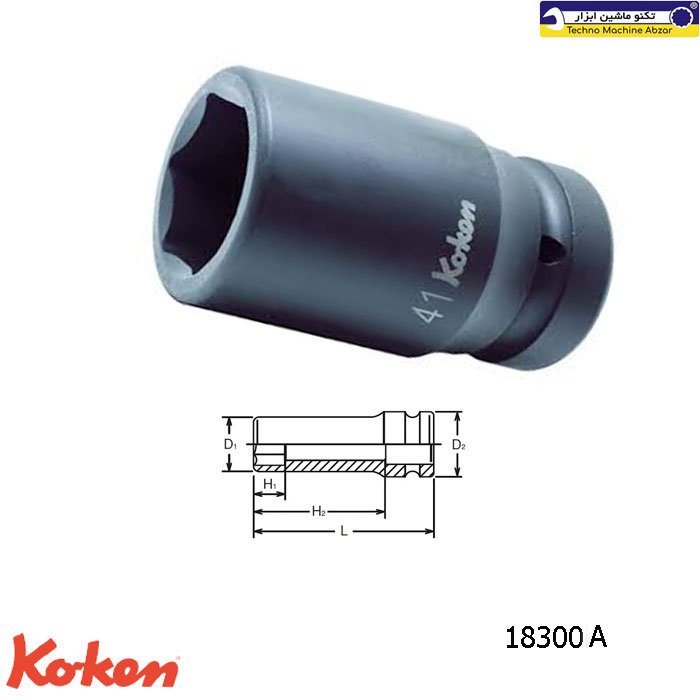 بکس بلند درایو 1 اینچی کوکن سیاه صنعتی، فشار قوی (KOKEN) ژاپن کد: 18300A