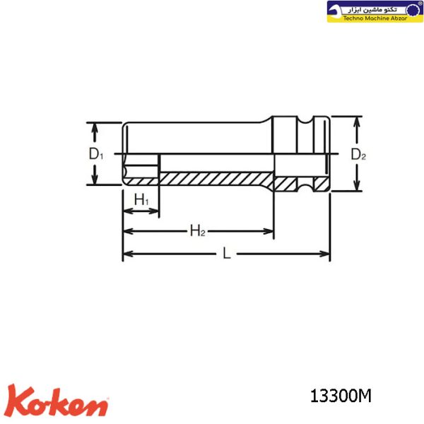 بکس بلند فشارقوی کوکن ژاپن، سیاه صنعتی کد 18300M با درایو: 1 اینچ، ساخته شده از آلیاژ فولاد کروم – وانادیوم و کروم – مولیبدن می باشد.